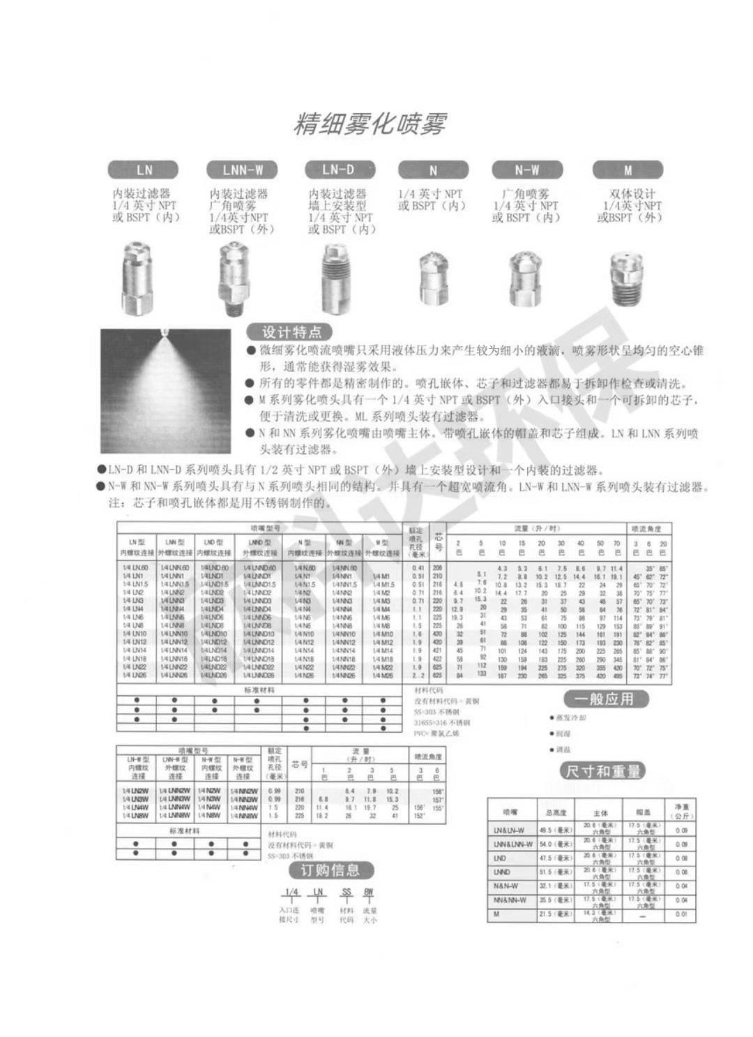 一、LNN微细雾化喷嘴特性
